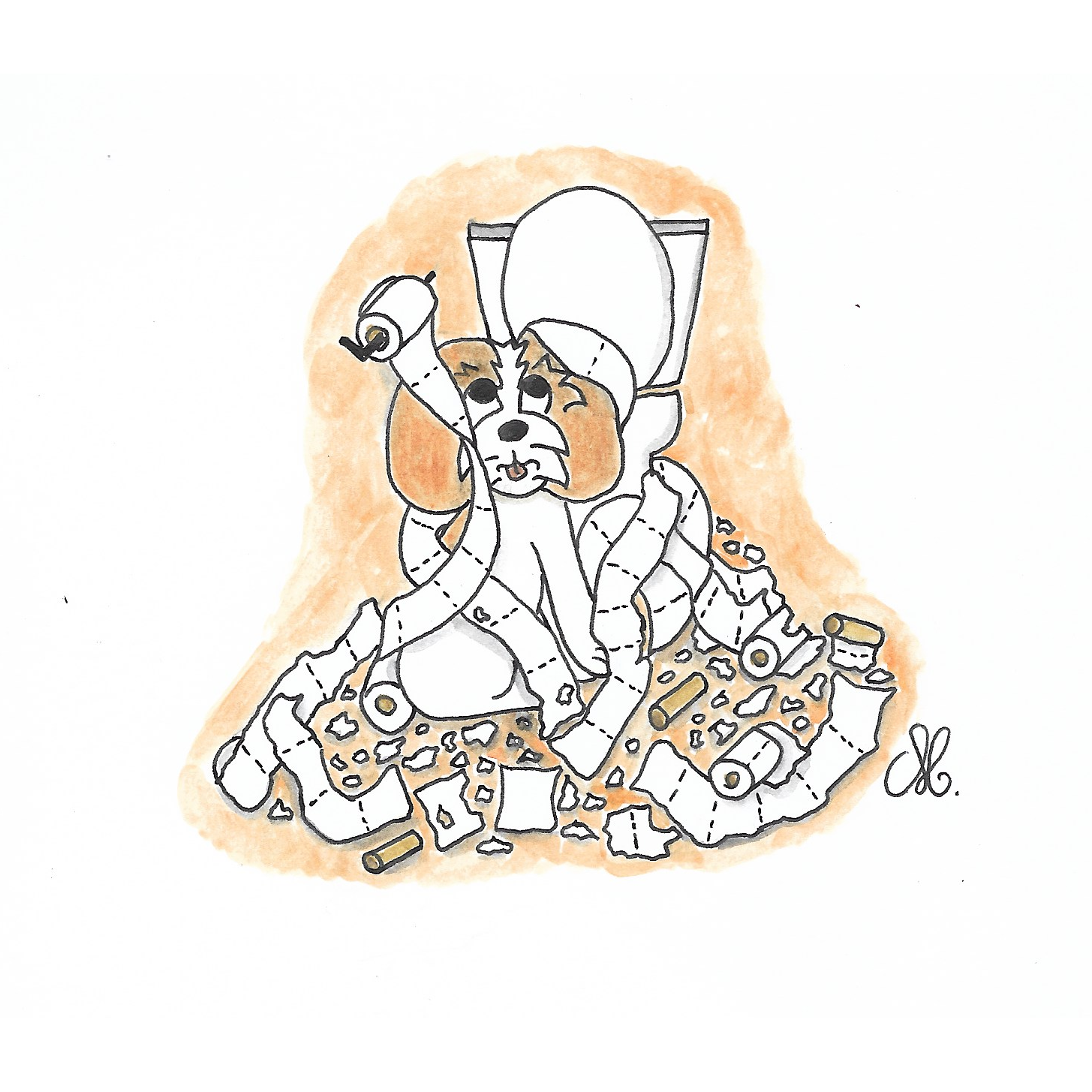 Il était une fois un petit chien espiègle nommé Ecco, qui adorait s’amuser avec tout ce qu’il trouvait. Mais attention ! Il y avait une chose qu’on ne devait jamais laisser à sa portée : les rouleaux de papier toilette !